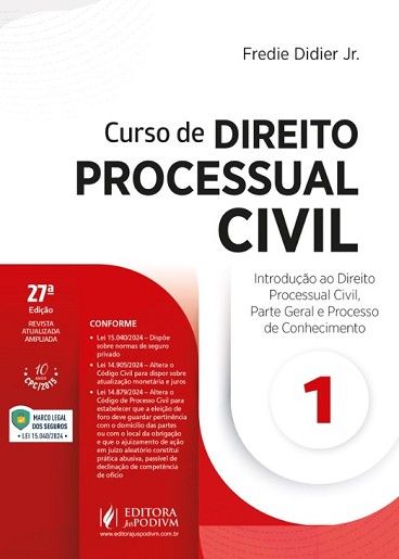 CONFORME: Lei 15.040/2024 Dispõe sobre normas de seguro privado Lei 14.905/2024 Altera o Código Civil para dispor sobre atualização monetária e juros. Lei 14.879/2024 Altera o Código de Processo Civil para estabelecer que a eleição de foro deve guardar pertinência com o domicílio das partes ou com o local da obrigação e que o ajuizamento de ação em juízo aleatório constitui prática abusiva, passível de declinação de competência de ofício. POR QUE ESCOLHER O LIVRO CURSO DE DIREITO PROCESSUAL CIVIL – V.1? Este volume do Curso vem com acréscimos, retiradas, retificações e atualizações em relação à edição anterior. Atualizei o livro de acordo com a Lei n. 14.879/2024, que alterou o art. 63 do CPC. Em razão dela, acrescentei item no capítulo sobre competência, para tratar especificamente do § 5º do art. 63, e reformulei o item sobre o foro de eleição. O livro foi também atualizado de acordo com a Lei n. 14.905/2024, a Lei n. 15.040/2024 (Marco Legal dos Seguros Privados), a Recomendação n. 154/2024 do Conselho Nacional de Justiça e o Tema 1.234 da repercussão geral do Supremo Tribunal Federal. Tendo em vista o julgamento das ADIs n. 6.792 e 7.055 pelo Supremo Tribunal Federal, acrescentei item novo no capítulo sobre competência, abordando as relações entre litigância predatória, liberdade de expressão e liberdade de imprensa, interpretação conforme a Constituição da regra competência de territorial para ações de responsabilidade civil extracontratual (art. 53, IV, a, CPC) e a conexão de causas. Aperfeiçoei a parte sobre desconsideração da personalidade jurídica, no capítulo sobre intervenção de terceiros, inclusive com acréscimo de item novo. Aperfeiçoei, também, a parte sobre conflito de competência. Inseri referências a importantes decisões dos tribunais superiores, proferidas em 2024, sobre temas abordados neste livro. Este Curso mantém a proposta original de ser uma obra em progresso. Conto com a ajuda de todos nessa empreitada. Que os alunos, professores, juristas e tribunais continuem prestigiando este projeto. Fredie Didier Jr