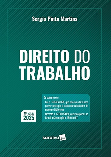 As inúmeras qualidades da obra Direito do Trabalho, de Sergio Pinto Martins – didática, organização, rigor nas atualizações legislativas, jurisprudenciais e doutrinárias etc. – elevaram seu status para doutrina imprescindível ao estudo do Direito material trabalhista. A obra pode ser utilizada por estudantes, concurseiros e profissionais do Direito como ferramenta ao mesmo tempo teórica e prática de conhecimento do Direito do Trabalho. O livro está dividido em cinco grandes partes: Teoria do Direito do Trabalho, Direito Internacional Público do Trabalho, Direito Individual do Trabalho, Direito Tutelar do Trabalho e Direito Coletivo do Trabalho.