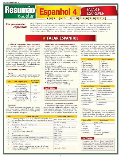 RESUMAO ESCOLAR – ESPANHOL 4 – FALAR E ESCREVER