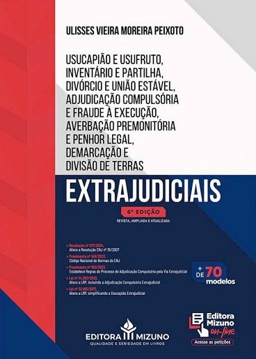 Este livro tem como propósito apresentar uma abordagem detalhada, focando em temas relevantes que envolvem a atuação fora do âmbito judicial. A obra oferece uma compreensão tanto teórica quanto prática de questões que são de extrema importância para os profissionais do direito, como o Inventário e a Partilha, a Usucapião e o Usufruto, o Divórcio e a União Estável, a Adjudicação Compulsória e a Fraude à Execução, a Averbação Premonitória e o Penhor Legal, além da Demarcação e Divisão de Terras Particulares. A estrutura do livro é organizada de forma a proporcionar ao leitor um entendimento completo dos temas abordados. A parte doutrinária oferece os fundamentos necessários, enquanto a parte prática, ao final de cada capítulo, traz modelos e orientações que auxiliam o profissional no dia a dia da advocacia extrajudicial. Essa combinação torna a obra uma ferramenta útil e de fácil aplicação para aqueles que atuam nessas áreas. ?? Tópicos Abordados Resolução nº 571/2024.Altera a Resolução CNJ nº 35/2007 Provimento nº 149/2023.Código Nacional de Normas do CNJ Provimento nº 150/2023.Estabelece Regras do Processo de Adjudicação Compulsória pela Via Extrajudicial Lei nº 14.382/2022.Altera a LRP, incluindo a Adjudicação Compulsória Extrajudicial Lei nº 13.465/2017.Altera a LRP, simplificando a Usucapião Extrajudicial