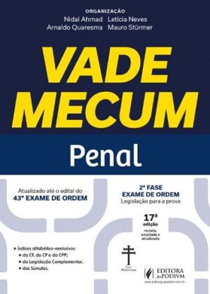 CONHEÇA O PRODUTO Com a melhor seleção de normas e atualizado até o edital do 45º Exame da OAB. ESTA PODE SER LEVADA PARA A PROVA! Sim! Você poderá levar o livro VADE MECUM PENAL no dia da 2ª Fase do Exame de Ordem. Além de poder utilizá-lo na etapa de estudos, ele também será seu companheiro de consulta nas provas! O LEITOR ENCONTRARÁ: Constituição Federal Código Penal Código de Processo Penal Código Penal Militar LINDB Legislação Correlata Súmulas Índices alfabéticos-remissivos CONTÉM: – Tarjas laterais com as seções do livro – Cabeçalho – Atualizações legislativas destacadas POR QUE ESCOLHER O VADE MECUM PENAL? O Vade Mecum Penal foi criado especialmente para atender às necessidades dos candidatos ao Exame de Ordem que fizeram a opção pela área Penal na 2ª fase do certame. A obra é organizada pelos experientes e renomados Professores Nidal Ahmad, Arnaldo Quaresma, Letícia Neves e Mauro Stürmer, que fizeram a seleção das normas, elaboraram as remissões e os índices alfabético-remissivos. O Vade traz os principais diplomas legais objeto de questionamento na 2ª fase do Exame da OAB e conta com diversos facilitadores de consulta como tarjas laterais com as seções do livro, cabeçalho, atualizações legislativas destacadas, dentre outros. Esse Vade está atualizado até o edital do 45º Exame de Ordem e a sua consulta é permitida na 2ª fase, tornando-se um aliado fundamental durante a realização da prova para buscar as fundamentações e os argumentos jurídicos necessários para a aprovação. Atualizado até 01.10.2025